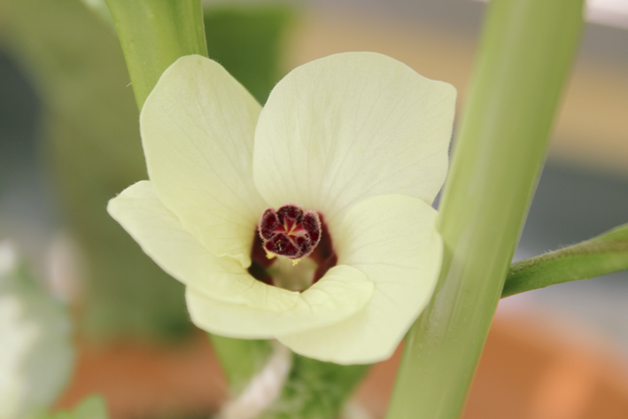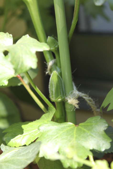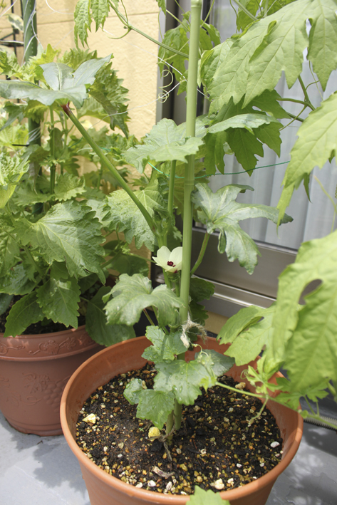 一番花のオクラと共に、2番花の小さなオクラがお目見えです!