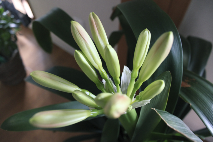 ここにきてどんどんつぼみが膨らんできているクンシランさま。