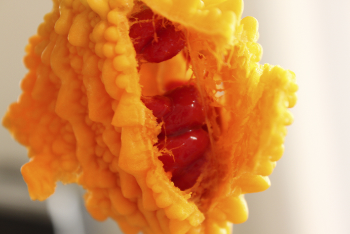実はゴーヤさん、このまま爆発してこの赤い種を蒔き散らすという
