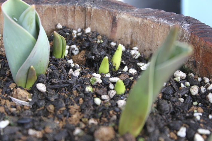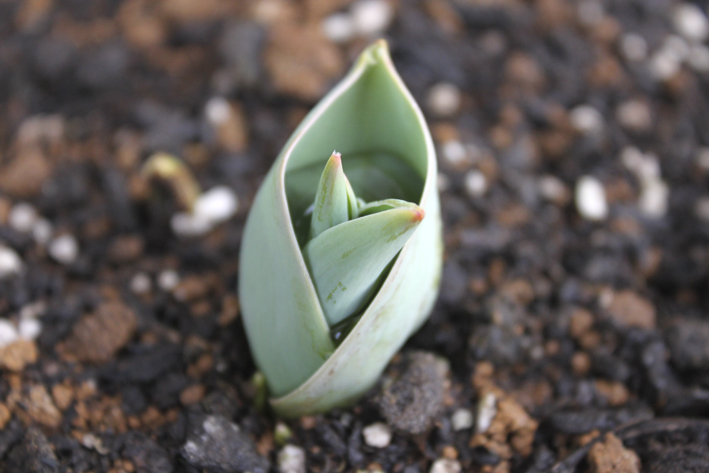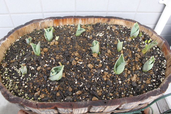 チューリップは交互に葉っぱがくるまってるんですね〜。