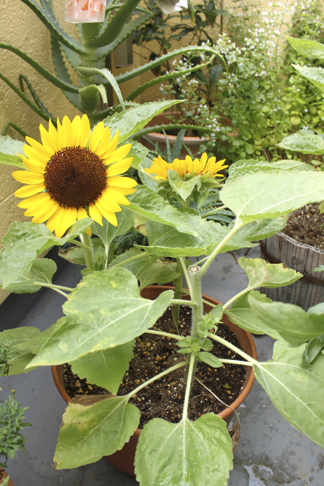 最初に咲き始めたヒマワリさんは摘み取りました。