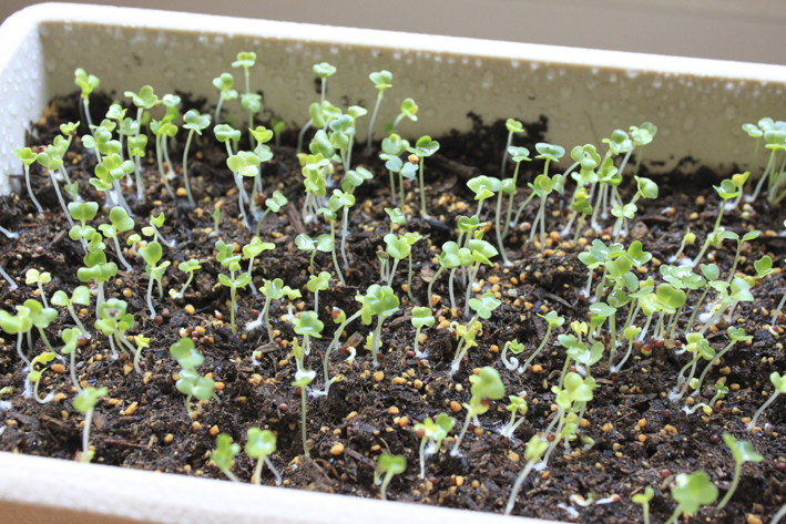 今朝(種まき3日目)のベビーリーフちゃん。