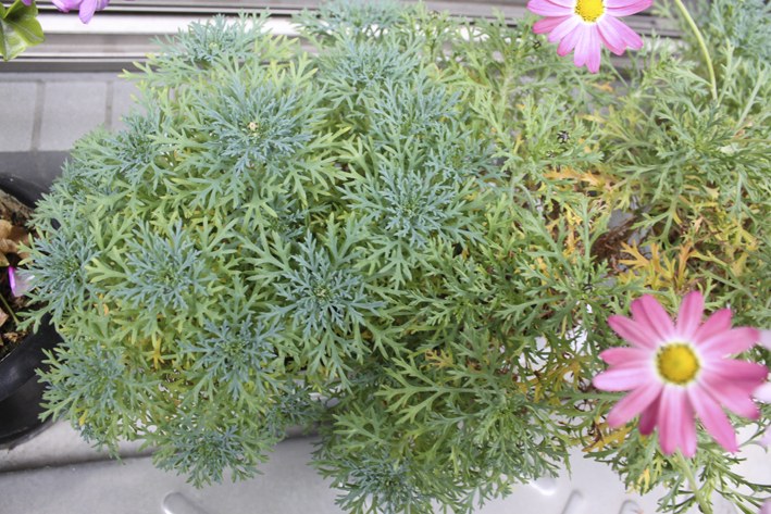 こちら向かって左側、ピンクのマーガレットさんと同じ鉢の株。