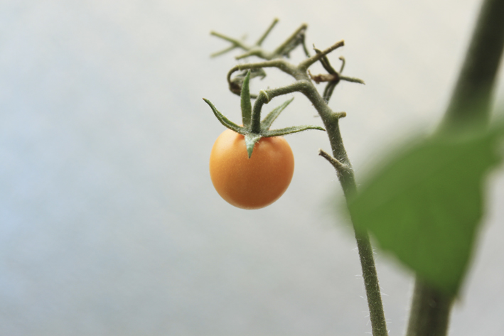 1段目に実っていた、たった1つのミニトマトちゃんが