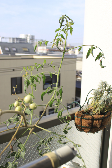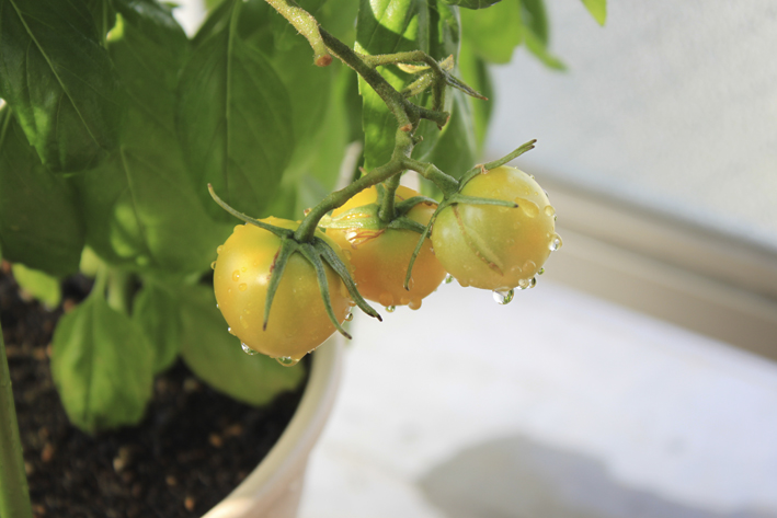 ミニトマトちゃんの一段目にできた実が色づき始めました♪