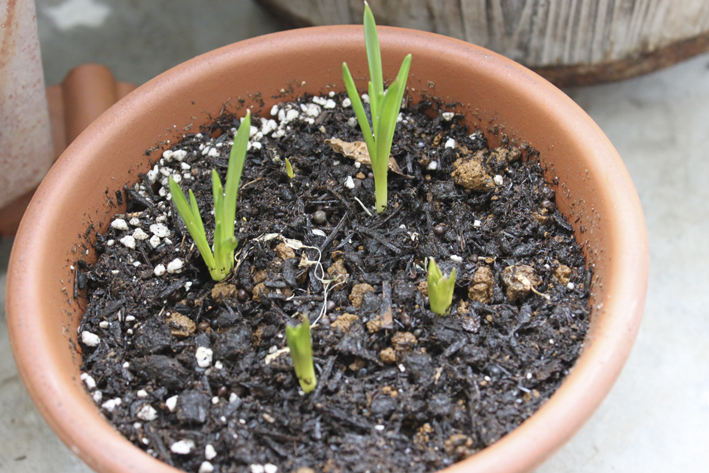 勝手に(?)芽が出始めていたムスカリちゃん。