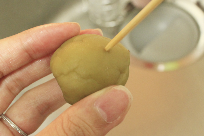 まずは梅の実に10カ所程度竹串で穴を空けます。