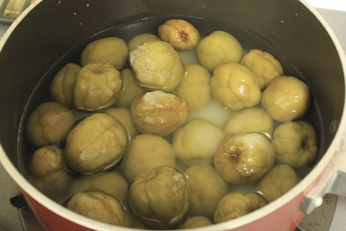このまま弱火で30分煮て、その後火を止めたら自然に冷めるまでそのまま。