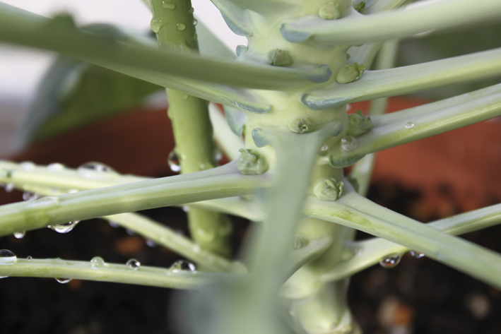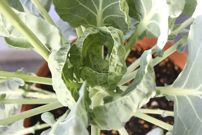 こうすることで、芽キャベツの芽が葉っぱに邪魔されずに