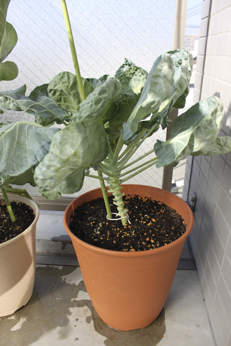 芽キャベツの芽が徐々に大きくなってまいりました☆