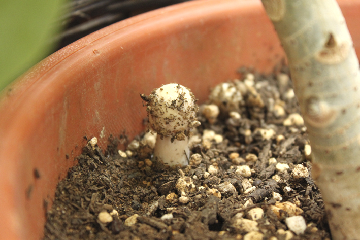 キノコと言えば昨年の夏、ミニトマトちゃんの鉢に生えました。(詳しくはコチラ)