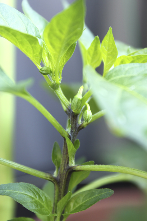 赤トウガラシさまの花芽が少しずつ大きくなっております☆