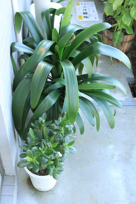 だんなサマ父から預かったクンシランと、先ほどの伯母さんから頂いた金のなる木。