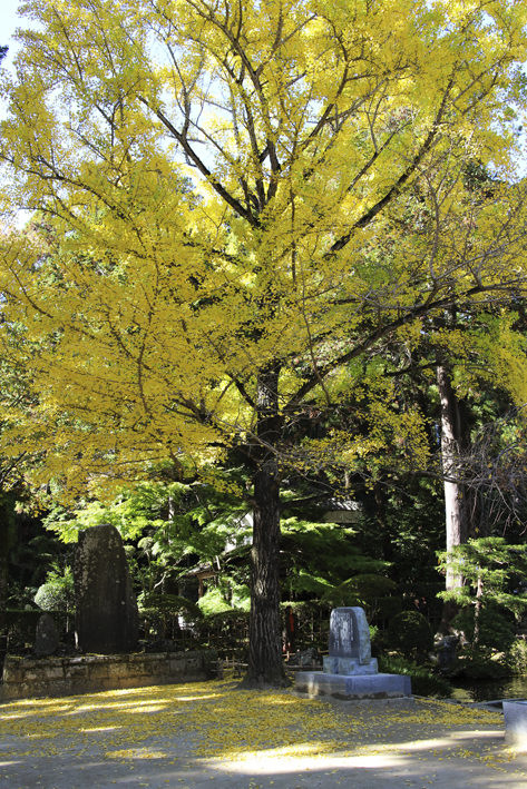 ふもとの筑波山神社には見頃のイチョウ。