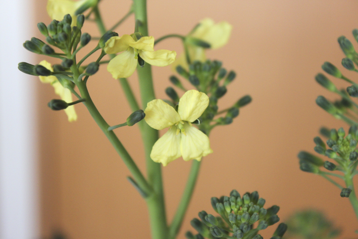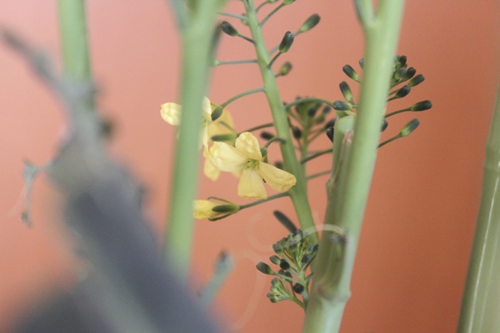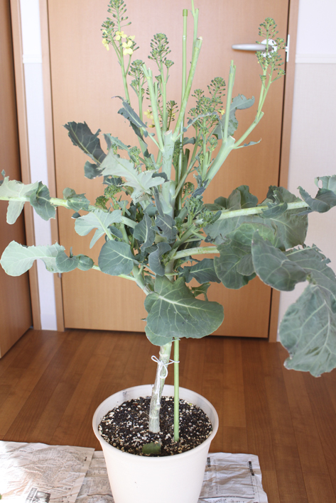 ヒヨドリ対策のため、いったんお部屋に避難したスティックブロッコリーさま。